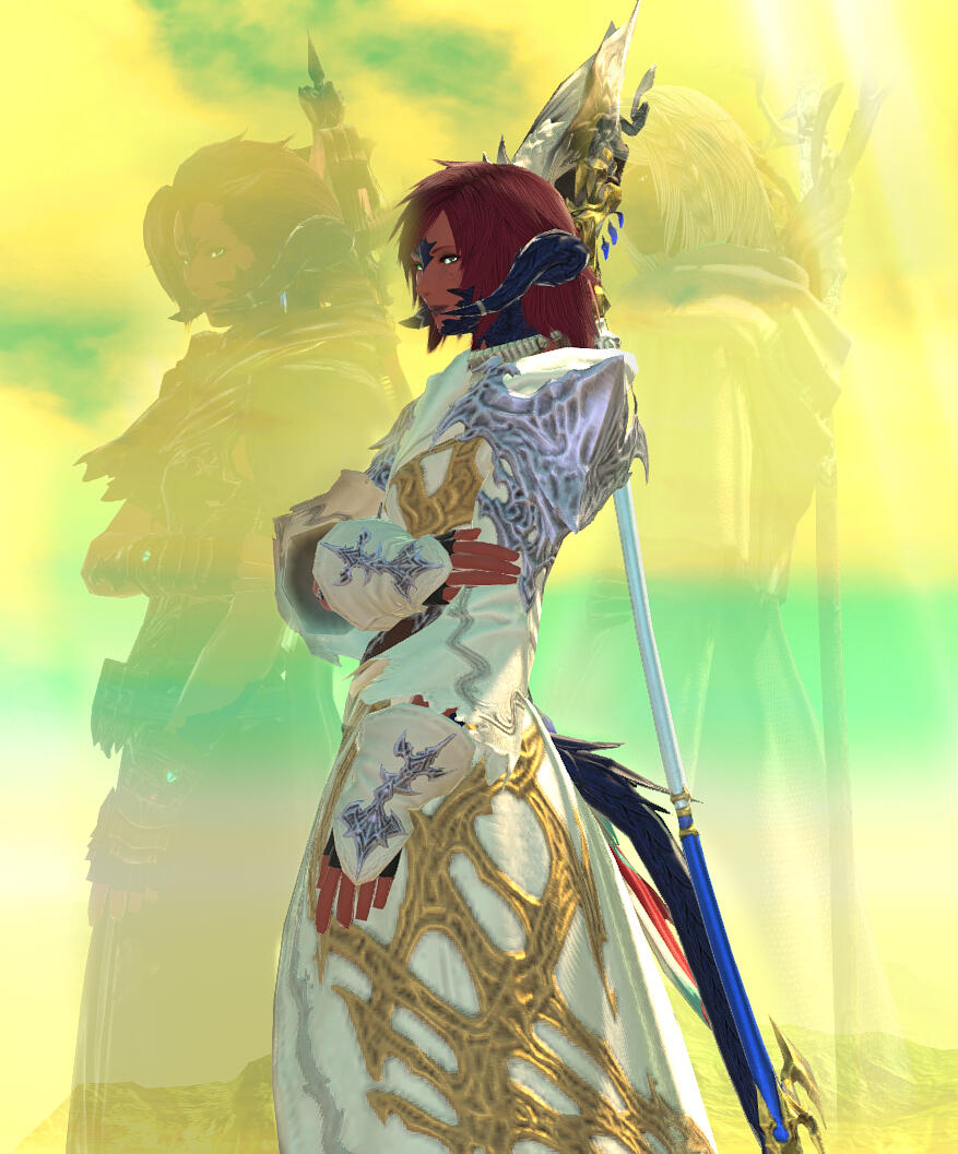 Possessed of the ability to force Arlessia's mind & body apart, these 'Entities' she would come to call them as would puppet her flesh towards their own ends, either unknowable or motivated by a single, overwhelming, all encompassing concept of her emotions. Whenever this has happened, Arlessia's right eye-which is bound directly to her corporeal aether, would change hue to one that seemed to represent the color of each of these vastly different shards of sentience.The first was the one with the luminous, piercing golden eyes. Originally showing herself to Arlessia in a dream the night before she & the Scions were to follow the flight of Ishgard's traitorous Archbishop to Asyz Lla, the words she spoke was a warning.